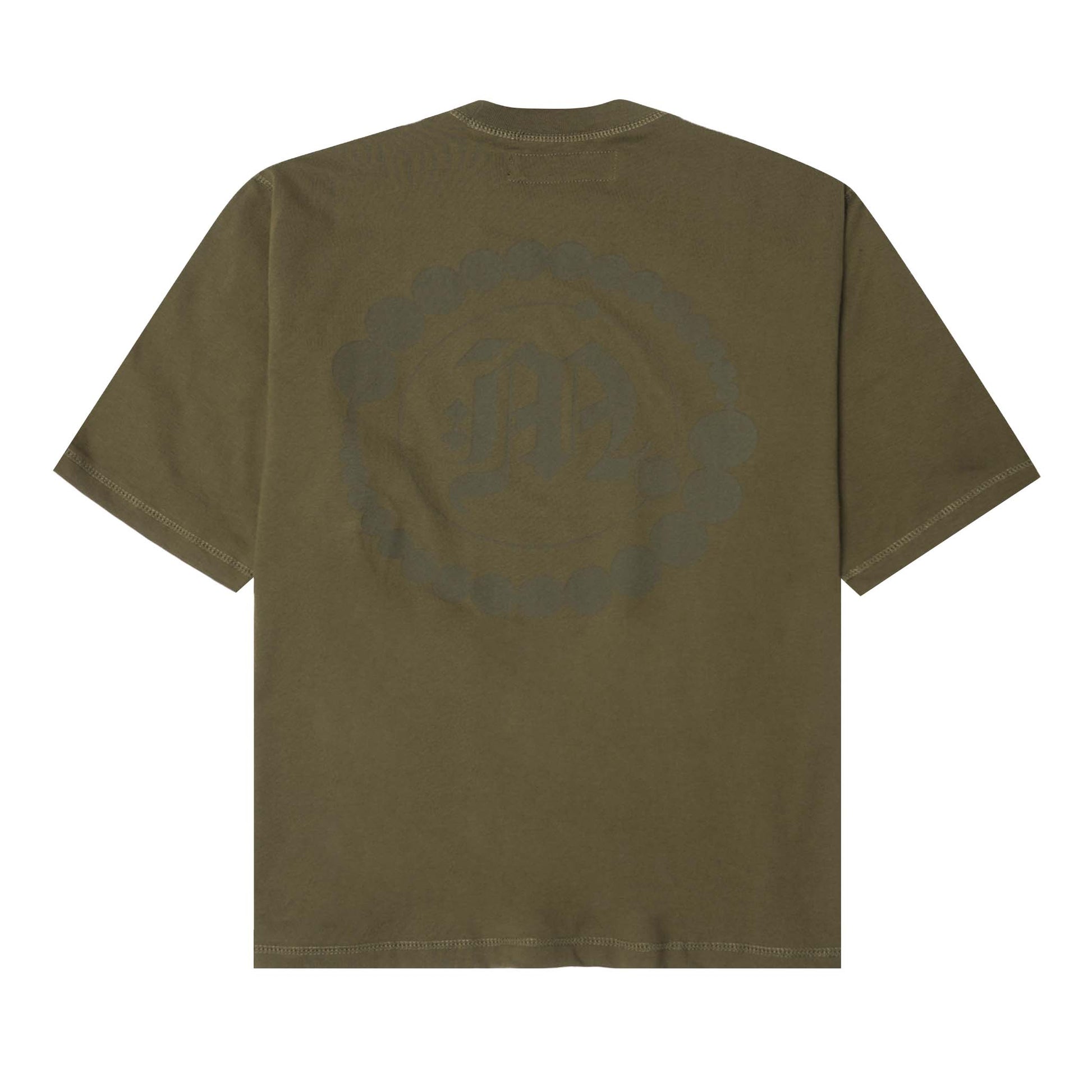 "CROP CIRCLES" MOCK NECK TEE IN OLIVE