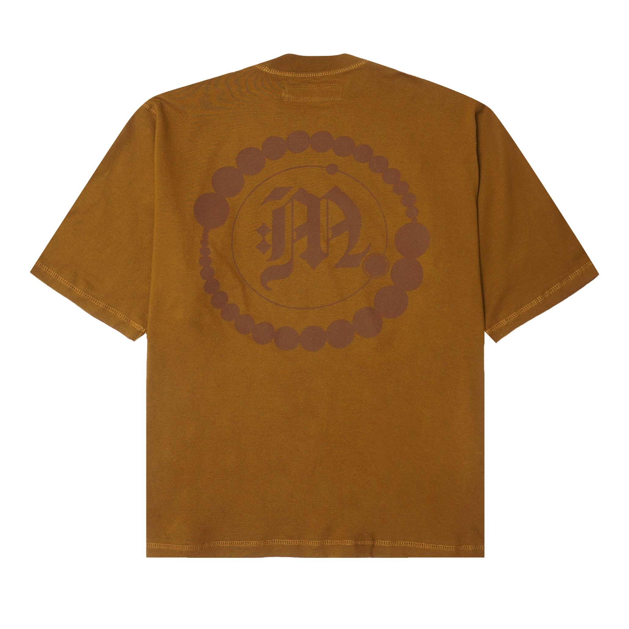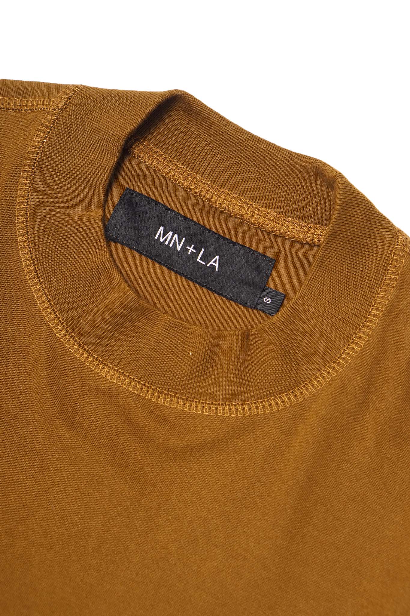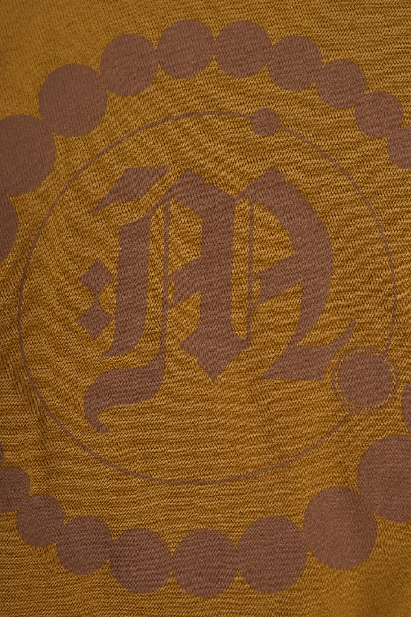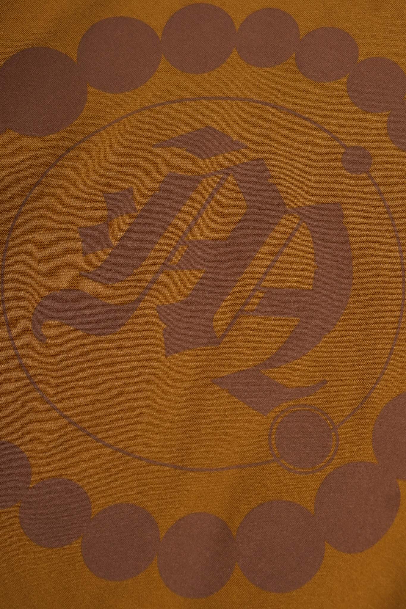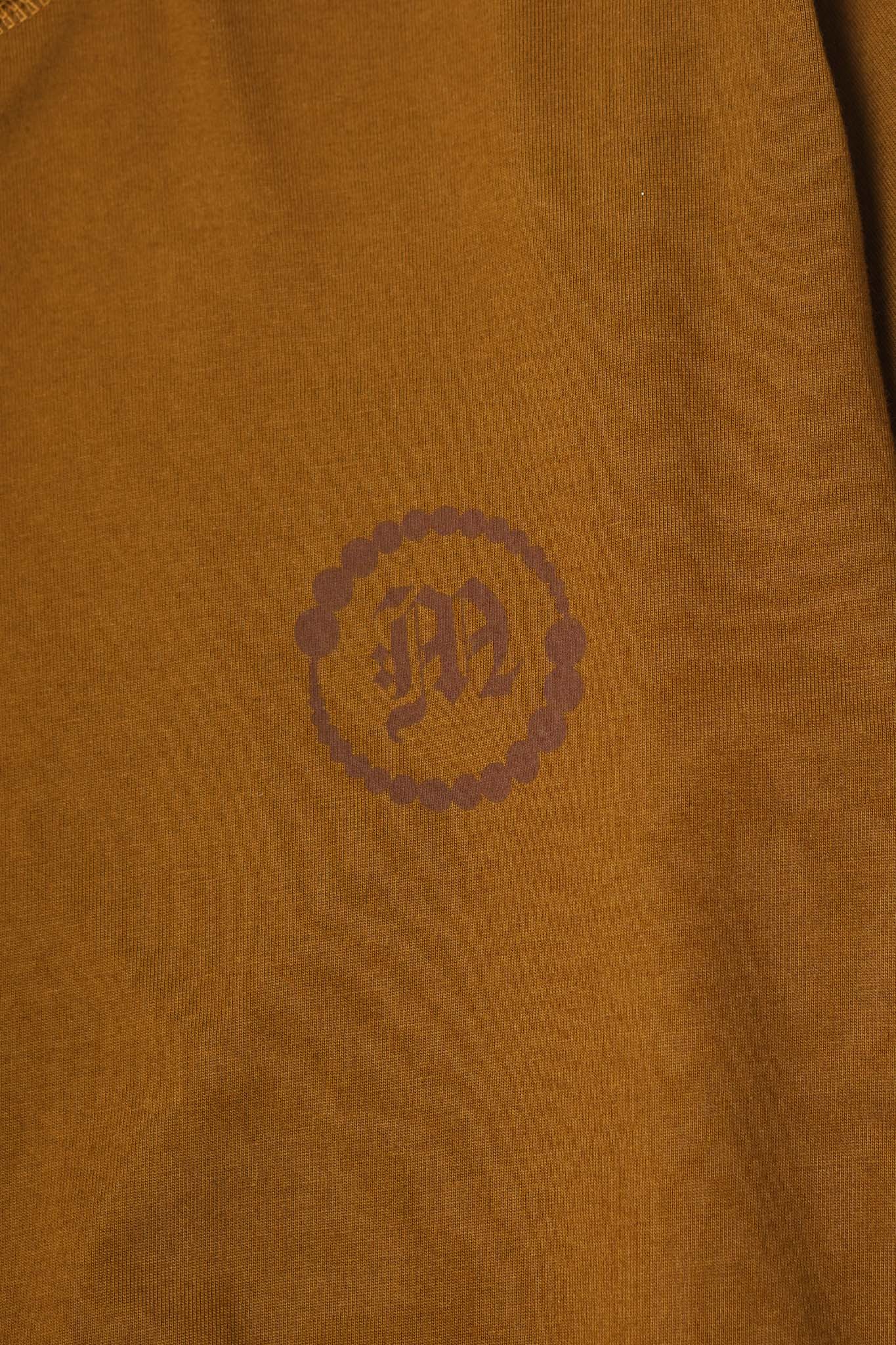 "CROP CIRCLES" MOCK NECK TEE IN RUST